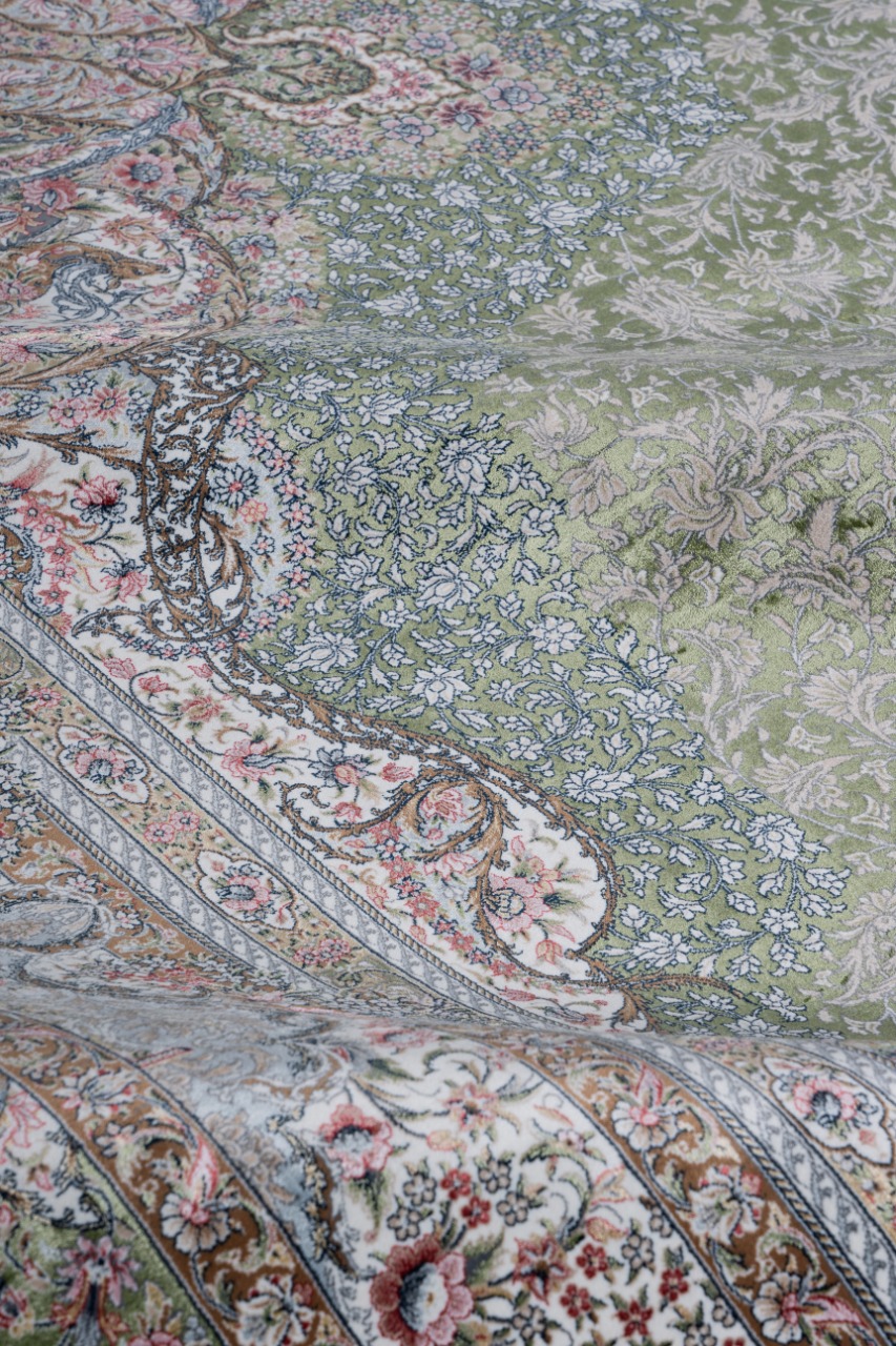 The Armani Carpet in Green, with its stunning design and calm colors, embodies Iranian art and comfort. This carpet, with its precise weaving and use of the finest threads, adds a sense of beauty and vitality to your home.